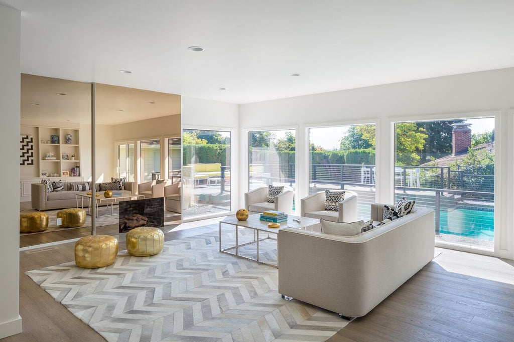 Hand stitched and patched together with different shades of hides in neutral tones make this rug a must-have piece. Place under your modern dining table for an urban and funky vibe.